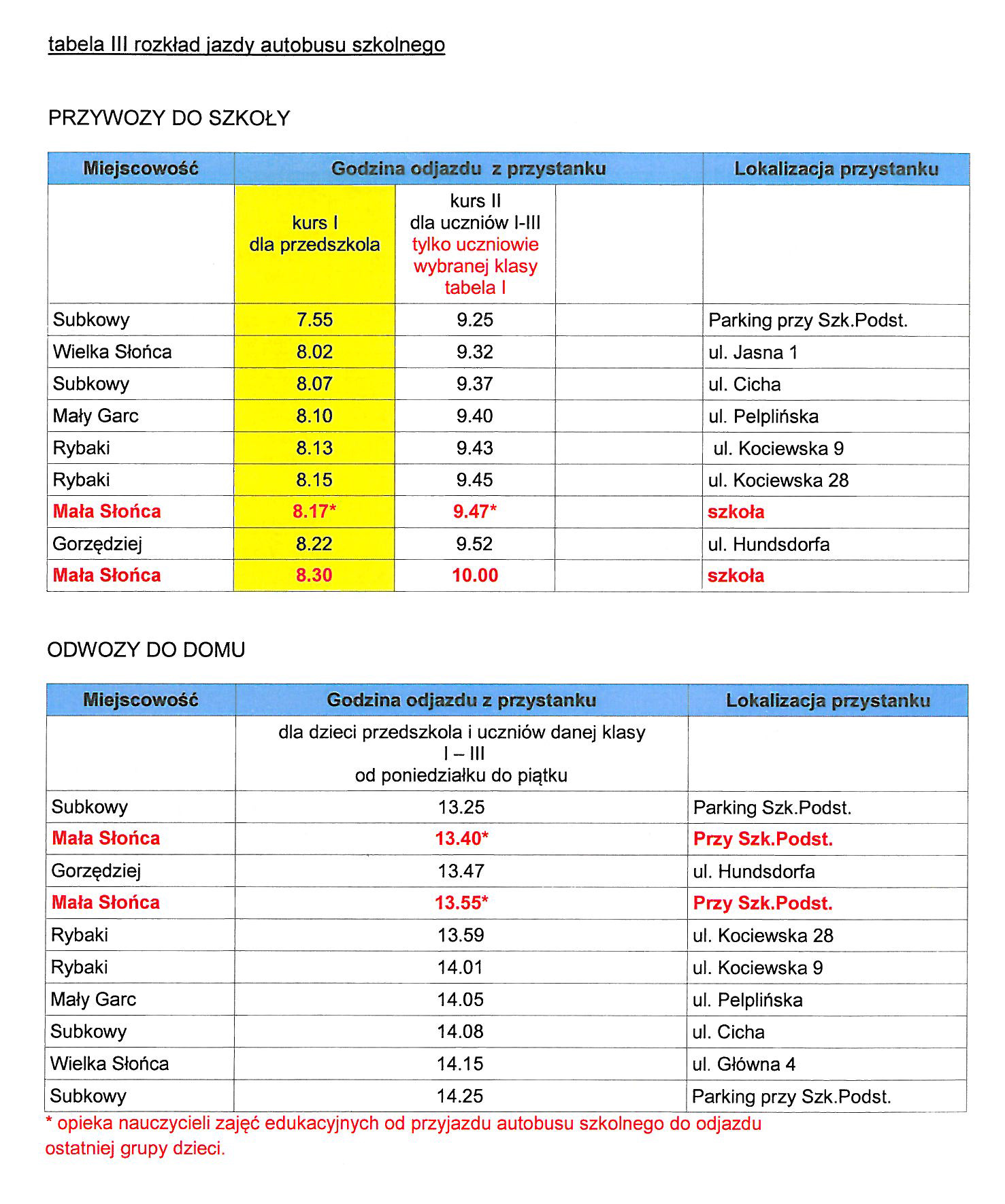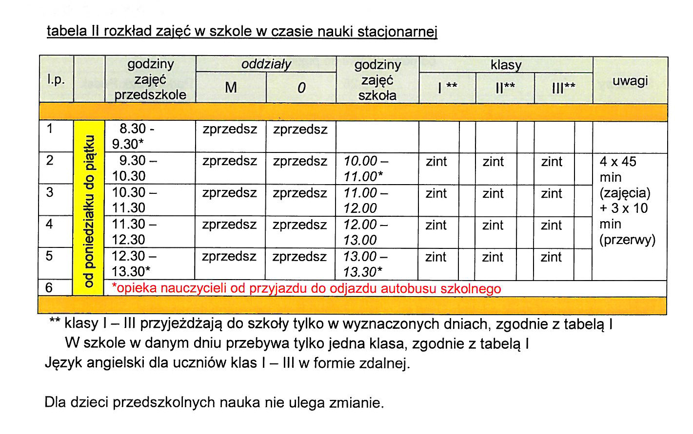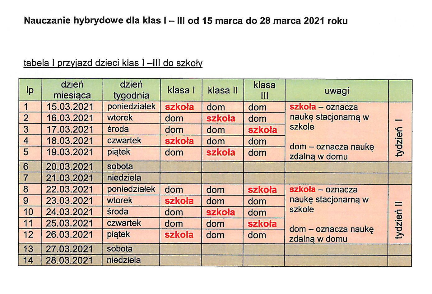 Plan zajęć wraz z rozkładem jazdy autobusów w okresie od 15.03.2021r. do 28.03.2021r.