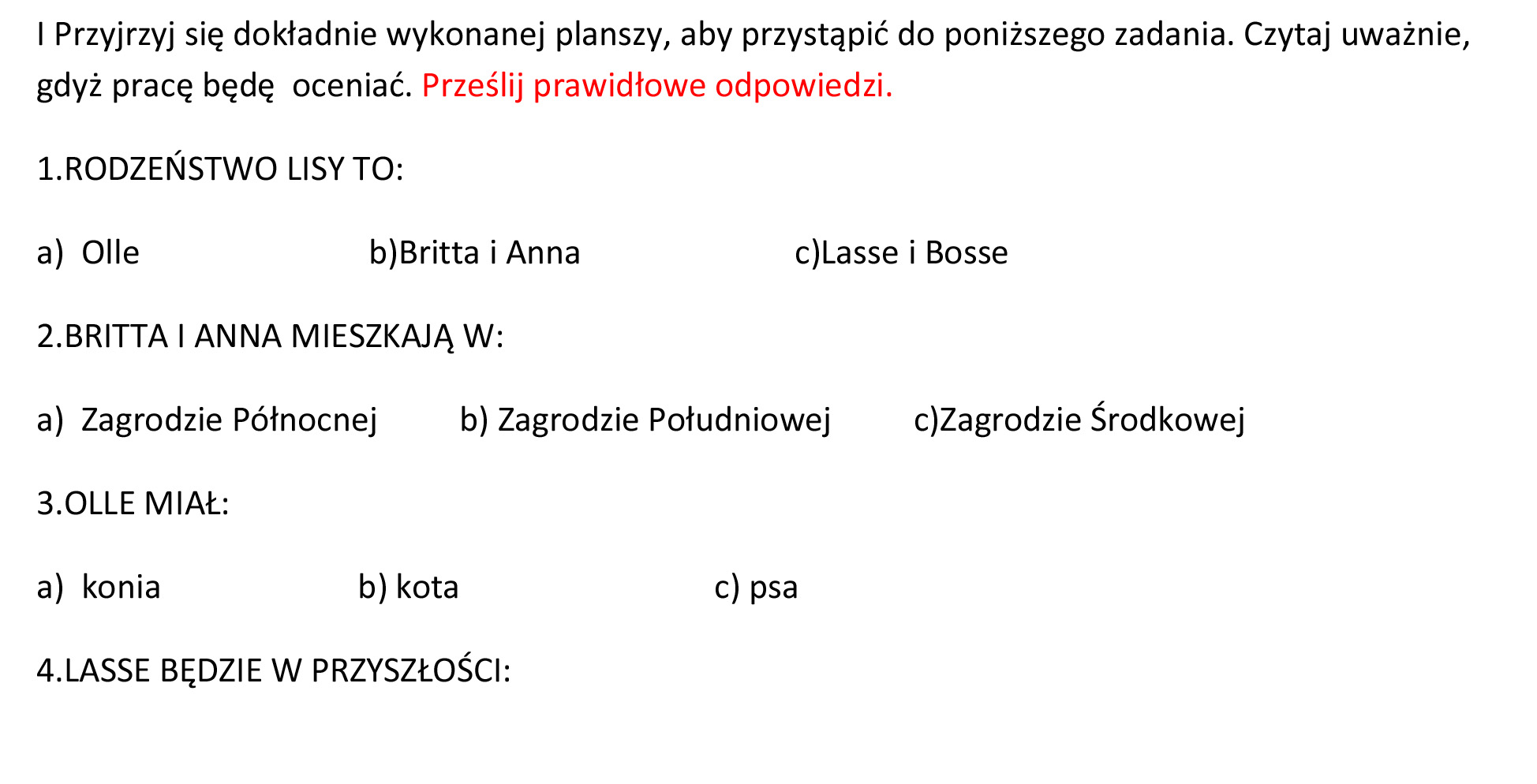 TEMAT DNIA: UTRWALENIE LEKTURY “Dzieci z Bullerbyn”